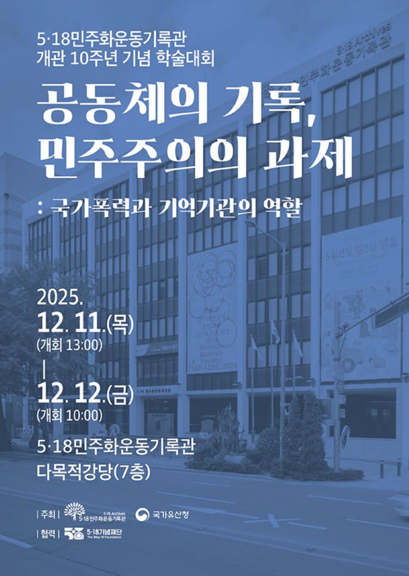[°ø°£´º½º = ±è¼ö±Ù±âÀÚ] ±¤ÁÖ±¤¿ª½Ã 5‧18¹ÎÁÖȿ±â·Ï°üÀº ±¹°¡À¯»êû°ú ÇÔ²² ¿À´Â 11~12ÀÏ ÀÌÆ²°£ ±â·Ï°ü¿¡¼ ¡®°øµ¿Ã¼ÀÇ ±â·Ï, ¹ÎÁÖÁÖÀÇÀÇ °úÁ¦ : ±¹°¡Æø·Â°ú ±â¾ï±â°üÀÇ ¿ªÇÒ¡¯À» ÁÖÁ¦·Î °³°ü 10Áֳ⠱â³ä Çмú´ëȸ¸¦ °³ÃÖÇÑ´Ù.