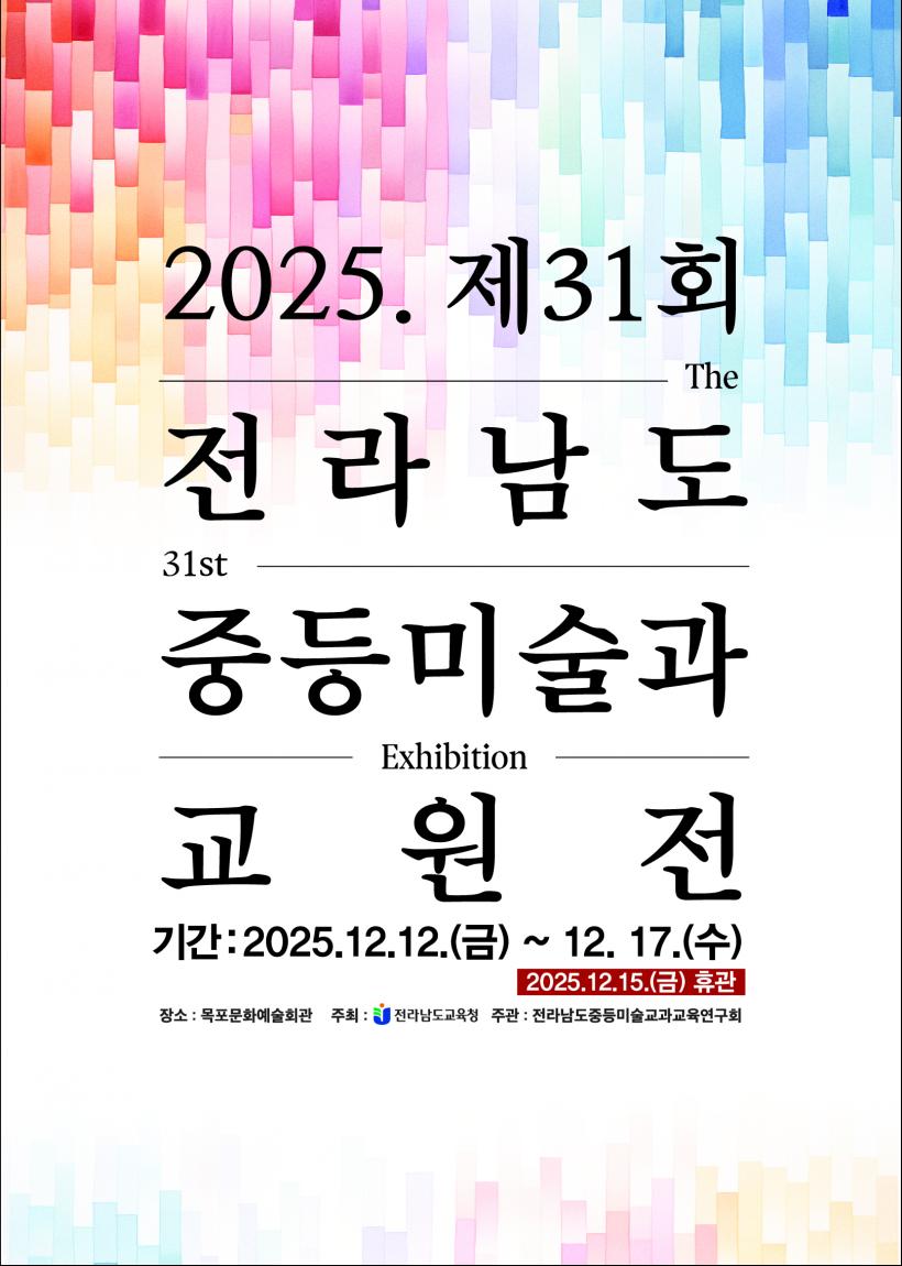 [°ø°£´º½º = ±è¼ö±Ù±âÀÚ] Àü¶ó³²µµ±³À°Ã»(±³À°°¨ ±è´ëÁß)Àº 12ÀϺÎÅÍ 17ÀϱîÁö ¸ñÆ÷¹®È¿¹¼úȸ°ü 1Ãþ Àü½Ã½Ç¿¡¼ ¡®2025. Á¦31ȸ Àü¶ó³²µµÁßµî¹Ì¼ú°ú±³¿øÀü¡¯À» °³ÃÖÇÑ´Ù.