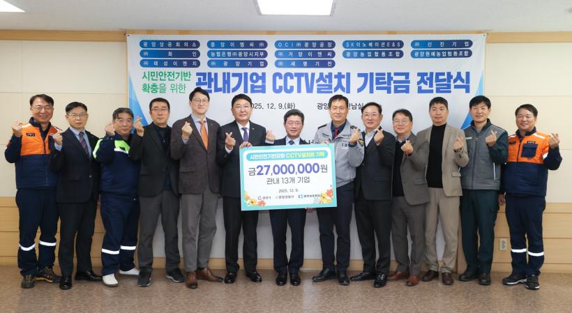 [°ø°£´º½º = Àå¿ÁÁø±âÀÚ] ±¤¾ç½Ã´Â Áö³ 9ÀÏ ½Ãû ¸¸³²½Ç¿¡¼ ±¤¾ç»ó°øÈ¸ÀÇ¼Ò È¸¿ø»ç 13°³ ±â¾÷À¸·ÎºÎÅÍ ½Ã¹Î ¾ÈÀü ±â¹Ý È®ÃæÀ» À§ÇÑ CCTV ¼³Ä¡ ±âŹ±Ý 2,700¸¸ ¿øÀ» Àü´Þ¹Þ¾Ò´Ù°í ¹àÇû´Ù.