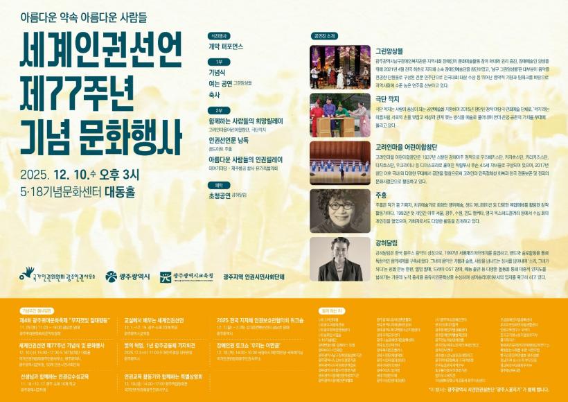 [°ø°£´º½º = ±è¼ö±Ù±âÀÚ] ±¤Áֽñ³À°Ã»(±³À°°¨ ÀÌÁ¤¼±)ÀÌ ¼¼°èÀαǼ±¾ð 77ÁÖ³âÀ» ¸Â¾Æ ±¤ÁÖ±¤¿ª½Ã, ±¹°¡ÀαÇÀ§¿øÈ¸ ±¤ÁÖÀαǻ繫¼Ò¿Í ¡®¼¼°èÀαǼ±¾ð ±â³äÁÖ°£¡¯À» ¿î¿µÇÑ´Ù.
