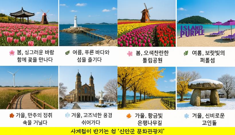 [°ø°£´º½º = ¹Ú¼º¿Á±âÀÚ] Àü³² ½Å¾È±ºÀº 1004°³ÀÇ ¼¶À¸·Î ÀÌ·ç¾îÁø ¡®¼¶µéÀÇ °íÀ塯ÀÌ´Ù. °èÀý¸¶´Ù ´Ù¸¥ ¾ó±¼À» °¡Áø À̰÷Àº ÀÚ¿¬°ú ¹®È, ¿¹¼ú°ú ÈÞ½ÄÀÌ ¾î¿ì·¯Áø ¿©ÇàÁö·Î, »ç°èÀý ³»³» ¿©ÇàÀÚµéÀÇ ¹ß±æÀ» »ç·ÎÀâ´Â´Ù.