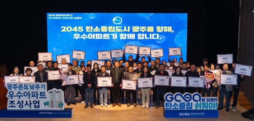 [°ø°£´º½º = ±è¼ö±Ù±âÀÚ] ±¤ÁÖ±¤¿ª½Ã(½ÃÀå °±âÁ¤)´Â 11ÀÏ ±¤ÁÖµðÀÚÀÎÁøÈï¿ø À̺¥Æ®È¦¿¡¼ ¡®2025 ±¤Áֿµµ³·Ã߱⠿ì¼ö¾ÆÆÄÆ® ½Ã»ó½Ä¡¯À» ¿°í, ź¼ÒÁ߸³ »ýȰ ½Çõ Ȱµ¿¿¡ Âü¿©ÇÑ ¿ì¼ö¾ÆÆÄÆ® 54°÷À» ½Ã»óÇß´Ù.