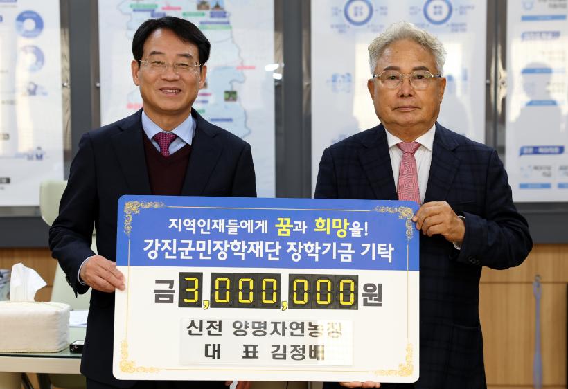 [°ø°£´º½º = ¹Ú¼º¿Á±âÀÚ] °Áø±º¹ÎÀåÇÐÀç´Ü¿¡ ¿¬¸»¿¬½Ã µû¶æÇÏ°í ¼ÒÁßÇÑ ±âŹ Çà·ÄÀÌ À̾îÁö°í ÀÖ´Â °¡¿îµ¥, ±è±ÔÇÏ ¾ÆÆ®ÆÊ ¿µµ¿Á¶ÇÕ¹ýÀÎ ´ëÇ¥ 1õ¸¸ ¿ø, ¸íµ¿ÁÖ ³ó¾÷ȸ»ç¹ýÀΠŽÁøµé(ÁÖ) ´ëÇ¥ 1õ¸¸¿ø, ±èÁ¤¹è ¾ç¸íÀÚ¿¬³óÀå ´ëÇ¥ 3¹é¸¸ ¿ø, ¾ç¿µ½Ä ´Ù¿ÍÄ«Æä ´ëÇ¥ 1¹é¸¸ ¿ø, °Áø±ºÃ» ±è¿Õ¼® ÁÖ¹«°üÀÌ 30¸¸ ¿øÀÇ ÀåÇбÝÀ» °Áø±º¹ÎÀåÇÐÀç´Ü(°Áø¿ø)¿¡ ±âŹ Çß´Ù.