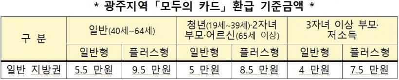 ±¤Áֽô ÀÌ¿¡ ¸ÂÃç ¡®±¤ÁÖ Áö(G)-ÆÐ½º¡¯¿Í ¡®¸ðµÎÀÇ Ä«µå¡¯¸¦ ¿¬µ¿ÇØ ½Ã¹ÎÀÌ º°µµÀÇ ¼±ÅÃÀ̳ª Ãß°¡ ½Åû ¾øÀ̵µ ¿ùº° ÀÌ¿ë ½ÇÀûÀ» ±âÁØÀ¸·Î ´õ Å« ȯ±Þ ÇýÅÃÀ» ÀÚµ¿ Àû¿ë¹ÞÀ» ¼ö ÀÖµµ·Ï ÇÒ °èȹÀÌ´Ù.