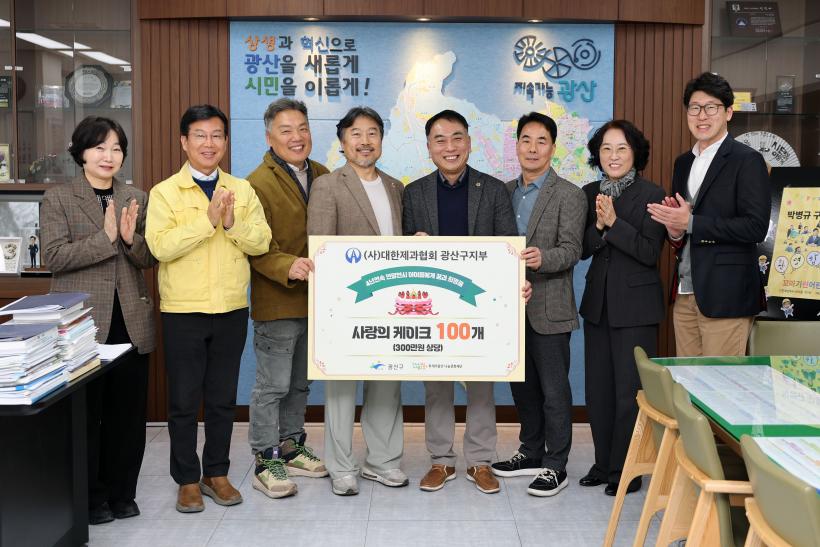 (»ç)´ëÇÑÁ¦°úÇùȸ ±¤ÁÖ¡¤Àü³²Áöȸ ±¤»ê±¸ÁöºÎ(ÁöºÎÀå Á¤ÇüÅÂ)´Â Áö³ 15ÀÏ ÀÌ¿ô »ç¶û ½ÇõÀ» À§ÇØ Á÷Á¢ ¸¸µç »ç¶ûÀÇ ÄÉÀÌÅ© 100°³¸¦ ±¤»ê±¸¿¡ Àü´ÞÇß´Ù.