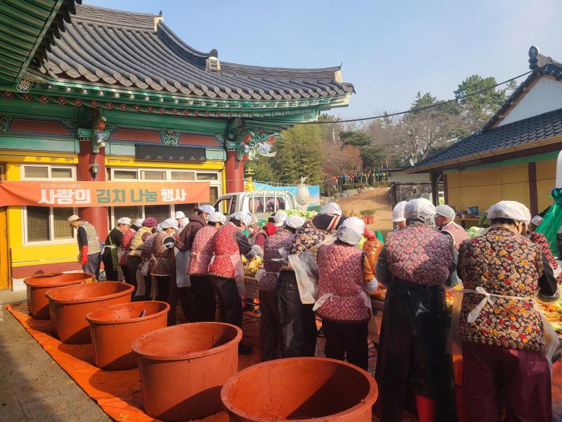 À̳¯ Çà»ç¿¡´Â ½º´Ô°ú ½Åµµ, Áö¿ªÀÇ ÀÚ¿øºÀ»çÀÚµéÀÌ ÇÔ²² Âü¿©ÇØ 3,000Æ÷±âÀÇ ±èÀå ±èÄ¡¸¦ ÁغñÇßÀ¸¸ç, Á¤¼º²¯ ´ãÀº ±èÄ¡´Â Áö¿ªÀÇ ¾î¸£½Åµé°ú Ãë¾à°èÃþ¿¡ Àü´ÞµÆ´Ù.