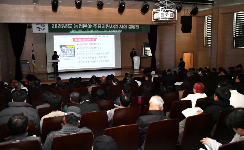 ¼³¸íȸ¿¡´Â ³ó¾÷À¯Åë°ú¿Í Ãà»ê¿ø¿¹°ú, ³ó¾÷±â¼ú¼¾ÅÍ, »ê¸²Á¤¿ø°ú°¡ Âü¿©ÇØ 2026³â¿¡ ÃßÁø ¿¹Á¤ÀÎ 147°³ ³ó¾÷ ºÐ¾ß Áö¿ø»ç¾÷¿¡ ´ëÇÑ ¼¼ºÎ ÁöħÀ» ¼³¸íÇϰí, »ç¾÷º° ÃßÁø ÀýÂ÷¿Í À¯ÀÇ»çÇ×À» ¾È³»Çß´Ù.