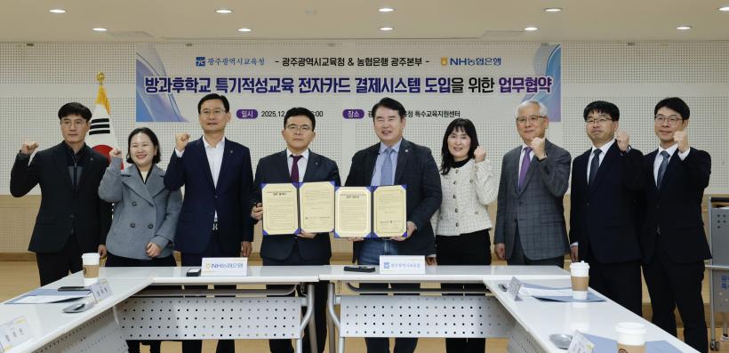 [°ø°£´º½º = ±è¼ö±Ù±âÀÚ] ±¤Áֽñ³À°Ã»(±³À°°¨ ÀÌÁ¤¼±)Àº 23ÀÏ ½Ã±³À°Ã» Ư¼ö±³À°Áö¿ø¼¾ÅÍ¿¡¼ NH³óÇùÀºÇà ±¤ÁÖº»ºÎ¿Í ¡®Æ¯¼ö±³À°´ë»óÇлý ¹æ°úÈÄ Æ¯±â¡¤Àû¼ºÁö¿ø ÀüÀÚÄ«µå °áÁ¦½Ã½ºÅÛ µµÀÔÀ» À§ÇÑ ¾÷¹«Çù¾à¡¯À» ü°áÇß´Ù.