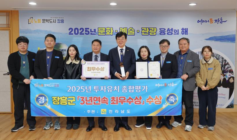 À̹ø Æò°¡´Â Àü³²µµ 22°³ ½Ã¡¤±ºÀ» ´ë»óÀ¸·Î ÅõÀÚÀ¯Ä¡ ½ÇÀû, À¯Ä¡ ¿©°Ç Á¶¼º, ÀÏ¹Ý ÇàÁ¤ µîÀÇ ½ÇÀûÀ» Æò°¡ÇØ ¼±Á¤ÇßÀ¸¸ç ÀåÈﱺÀº ¡®2023³â, 2024³â ÃÖ¿ì¼ö»ó¡¯¿¡ À̾î 3³â ¿¬¼Ó ¼ö»óÀÇ ¿µ¿¹¸¦ ¾È¾Ò´Ù.