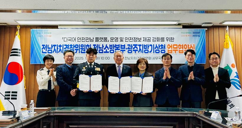 [°ø°£´º½º = ±è¼ö±Ù±âÀÚ] Àü³²ÀÚÄ¡°æÂûÀ§¿øÈ¸´Â Àü³²¼Ò¹æº»ºÎ, ±¤ÁÖÁö¹æ±â»óû°ú Áö³ 23ÀÏ ¾÷¹«Çù¾àÀ» ÇØ ¿Ü±¹ÀÎÀÇ ¾ÈÀüÇÑ »ýȰÀ» º¸È£Çϰí Áö¿øÇÏ´Â ´Ù±¹¾î ¾ÈÀüÀü³² ¾Û ¿î¿µ°ú ¾ÈÀüÁ¤º¸ Á¦°øÀ» ÇÑÃþ °ÈÇϱâ·Î Çß´Ù.
