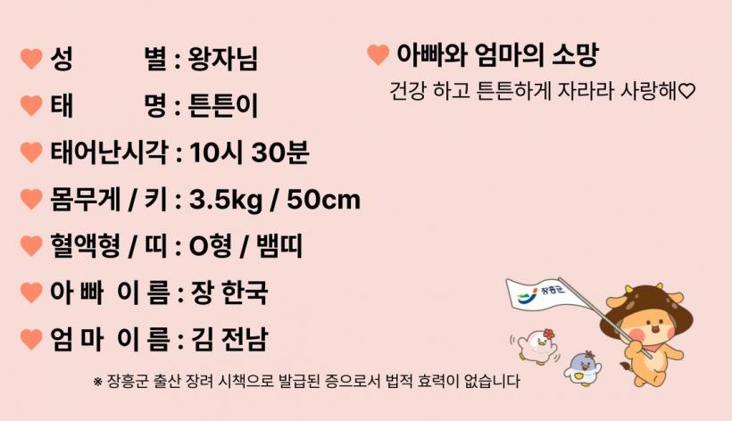 ÀåÈﱺ °ü°èÀÚ´Â ¡°¾Æ±â Áֹεî·ÏÁõÀ» ÅëÇØ ¾ÆÀÌÀÇ Ãâ»ýÀ» ±â³äÇϸç, °¡Á·µé¿¡°Ô µû¶æÇÑ Ãß¾ïÀÌ µÇ±æ ¹Ù¶õ´Ù¡±¸ç ¡°¾ÕÀ¸·Îµµ ´Ù¾çÇÑ Ãâ»ê Àå·Á Á¤Ã¥À» ¸¶·ÃÇØ ¾ÆÀÌ Å°¿ì±â ÁÁÀº ÀåÈïÀ» ¸¸µé°Ú´Ù¡±°í ¹àÇû´Ù.