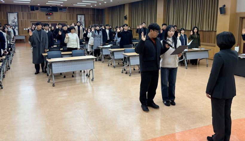 ±¤ÁÖ¼ºÎ±³À°Áö¿øÃ»Àº ½Å±Ô °ø¹«¿øµé¿¡°Ô ¡®Ã»·Å °Å¿ï¡¯À» Àü´ÞÇÏ¸ç ¸ÅÀÏ ½º½º·Î¸¦ ¼ºÂûÇϰí ÃʽÉÀ» ÀÒÁö ¾Ê´Â û·ÅÇÑ °øÁ÷Àڷμ ¼ºÀåÇÏ±æ °Ý·ÁÇÏ´Â ½Ã°£À» °¡Á³´Ù.