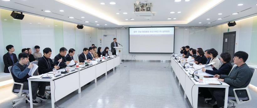 °±âÁ¤ ½ÃÀåÀÌ ÁÖÀçÇÑ Ã¹ ½Ç¹«È¸ÀÇ¿¡´Â À̳¯ Ãâ¹üÇÑ ¡®±¤ÁÖ¡¤Àü³² ÇàÁ¤ÅëÇÕ ÃßÁø±âȹ´Ü¡¯ Àü¿ø°ú ±¤ÁÖ¿¬±¸¿øÀÌ Âü¼®ÇØ ±¤ÁÖ¡¤Àü³² ÇàÁ¤ÅëÇÕ ÃßÁøÀ» À§ÇÑ ÀÏÁ¤°ú ÁÖ¿ä °úÁ¦¸¦ °øÀ¯Çϰí, ÇàÁ¤ÅëÇÕ ÃßÁøÀ» À§ÇÑ ½ÇÇà ¹æÇâ ¹× °úÁ¦º° ¿ªÇÒ ºÐ´ã µîÀ» ³íÀÇÇß´Ù.