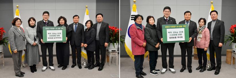 Áö¿ª ¿©¼º ´Üüµéµµ ±âºÎ¿¡ µ¿ÂüÇÏ¿© ÈûÀ» º¸ÅÉ´Ù. ´ã¾ç³óÇù ³ó°¡ÁֺθðÀÓ(ȸÀå ½ÅºÎÀÚ)¿¡¼´Â 20kg ¹é¹Ì 50Æ÷(300¸¸ ¿ø »ó´ç)¸¦, ´ã¾ç³óÇù ºÎ³àȸ(ȸÀå ±èÇö¼÷)¿¡¼´Â 20kg ¹é¹Ì 20Æ÷(120¸¸ ¿ø »ó´ç)¸¦ Àü´ÞÇϸç Áö¿ª»çȸ¿¡ ¿Â±â¸¦ ºÒ¾î³Ö¾ú´Ù.