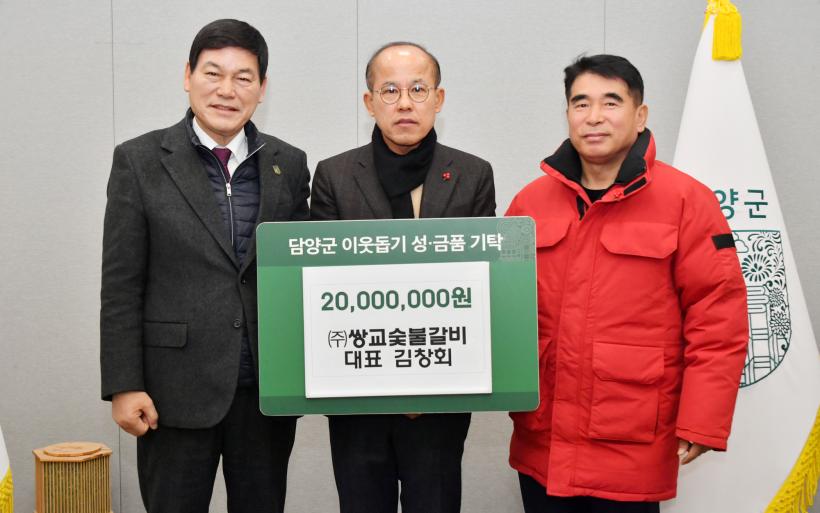 ´ã¾ç±º¿¡ µû¸£¸é ½Ö±³½¡ºÒ°¥ºñ(´ëÇ¥ ±èâȸ)¿¡¼ ¼º±Ý 2õ¸¸ ¿øÀ» ±âŹÇÑ µ¥ À̾î, ´ã¾çÀåÅ͸ô ³ó¾÷ȸ»ç¹ýÀÎ ÁÖ½Äȸ»ç(´ëÇ¥ ¹Ú¿µ¼ö)¿Í ²ÞÀïÀÌ ¸ñ°ø¹æ(´ëÇ¥ Á¤Ã¢¿ì)¿¡¼µµ °¢°¢ 100¸¸ ¿ø°ú 50¸¸ ¿øÀÇ ¼º±ÝÀ» Àü´ÞÇϸç ÀÌ¿ô»ç¶û ½Çõ¿¡ µ¿ÂüÇß´Ù.