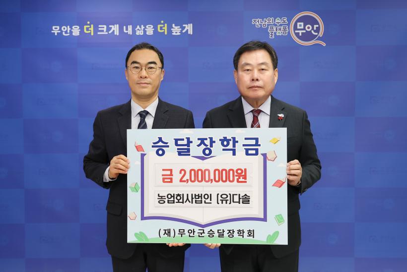 [°ø°£´º½º = ¹Ú¼º¿Á±âÀÚ] ¹«¾È±º(±º¼ö ±è»ê)Àº Áö³ 9ÀÏ ³ó¾÷ȸ»ç¹ýÀÎ À¯ÇÑȸ»ç ´Ù¼Ö ±èÁö¼ö ´ëÇ¥°¡ Áö¿ª ÀÎÀç À°¼ºÀ» À§ÇØ (Àç)¹«¾È±º½Â´ÞÀåÇÐȸ¿¡ ÀåÇÐ±Ý 200¸¸ ¿øÀ» ±âŹÇß´Ù°í ¹àÇû´Ù.