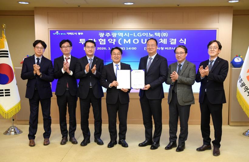 [°ø°£´º½º = ±è¼ö±Ù±âÀÚ] ±¤ÁÖ±¤¿ª½Ã(½ÃÀå °±âÁ¤)¿Í LGÀ̳ëÅØÀº 13ÀÏ ½Ãû ºñÁî´Ï½º·ë¿¡¼ ¡®Â÷·®¿ë Á¦¾î¸ðµâ ½Å±Ô »ý»ê¶óÀÎ ±¸ÃàÀ» À§ÇÑ ÅõÀÚÇù¾à¡¯À» ü°áÇß´Ù. À̹ø Çù¾àÀº 2026³â »õÇØ ºÎ°ÇÑ ±¤ÁÖ·ÎÀÇ ÈûÂù µµ¾àÀ» ¾Ë¸®´Â ù ½ÅȣźÀÌ´Ù.