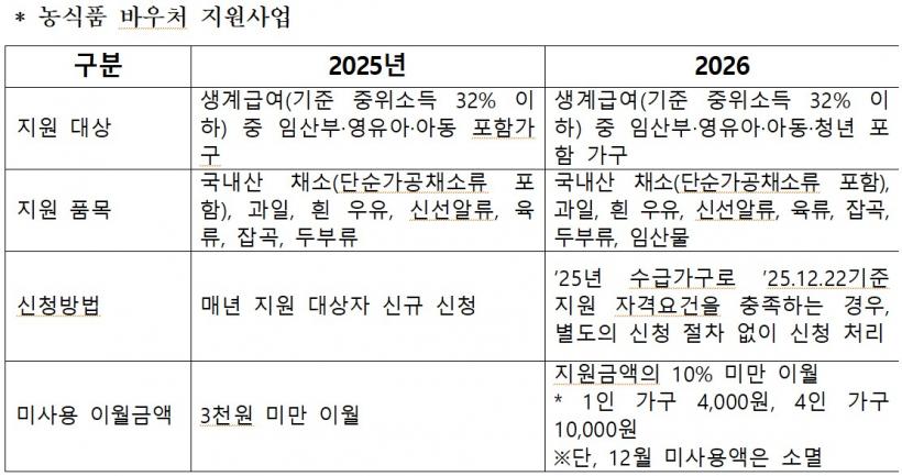 Áö¿ø ±â°£Àº ¿ÃÇØ 1¿ùºÎÅÍ 12¿ù±îÁö 12°³¿ùÀÌ´Ù. Áֹεî·Ï ÁÖ¼ÒÁö °üÇÒ À¾¸éµ¿ ÇàÁ¤º¹Áö¼¾Å͸¦ ¹æ¹®Çϰųª ¿Â¶óÀÎ(www.foodvoucher.go.kr)°ú ÀüÈ(1551-0857)¸¦ ÅëÇØ ½ÅûÇÒ ¼ö ÀÖ´Ù.