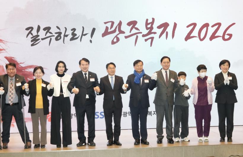 [°ø°£´º½º = ±è¼ö±Ù±âÀÚ] ±¤ÁÖ±¤¿ª½Ã(½ÃÀå °±âÁ¤)´Â ±¤Áֽûçȸº¹ÁöÇùÀÇȸ¿Í ÇÔ²² 16ÀÏ ¼±¸ ¿þµù±×·ì À§´õ½º ±¤ÁÖ¿¡¼ ¹Î¡¤°ü¡¤Á¤¡¤º¹Áö°¡ ÇÑÀÚ¸®¿¡ ¸ð¿© º¹Áö ºñÀüÀ» °øÀ¯ÇÏ´Â ¡®2026³â ±¤ÁÖº¹Áö ½Å³âÀλçȸ¡¯¸¦ °³ÃÖÇß´Ù.