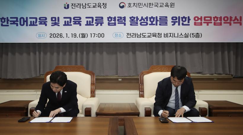 [°ø°£´º½º = ±è¼ö±Ù±âÀÚ] Àü¶ó³²µµ±³À°Ã»(±³À°°¨ ±è´ëÁß)°ú ȣġ¹Î½ÃÇѱ¹±³À°¿ø(¿øÀå ¾ÈÈñö)Àº 19ÀÏ Àü¶ó³²µµ±³À°Ã»¿¡¼ Çѱ¹¾î±³À°, ±¹Á¦ ±³À°±³·ù Ȱ¼ºÈ ¹× ¿Ü±¹ÀÎ À¯Çлý À¯Ä¡ Çù·ÂÀ» À§ÇÑ ¾÷¹«Çù¾àÀ» ü°áÇß´Ù.