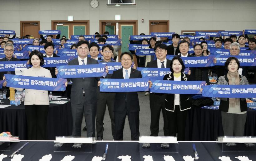 °±âÁ¤ ±¤ÁÖ½ÃÀåÀº ¡°¿ì¸®ÀÇ »ê¾÷ÀÌ ³Ð¾îÁö°í û³âµéÀÇ ÀÏÀÚ¸®¿Í ±âȸ°¡ »ý±æ ¼ö ÀÖµµ·Ï Áö»êÇп¬ °¢ ÁÖü°¡ °¡Áø ¿ª·®À» Çϳª·Î Áý°áÇØ »õ·Î¿î »ê¾÷Áöµµ¸¦ ±×¸®°Ú´Ù¡±¸ç ¡°ÀΰøÁö´É(AI)°ú ¿¡³ÊÁö, ¹ÝµµÃ¼¿Í ¹®È·Î Ȱ¦ ²ÉÇÇ´Â ºÎ°ÇÑ ±¤ÁÖÀü³²ÀÇ ¿ø³âÀÌ µÉ ¼ö ÀÖµµ·Ï ¸ðµÎ°¡ ÈûÀ» ¸ð¾Æ »õ·Î¿î ±æÀ» ¿¾î°¡ÀÚ¡±°í ´çºÎÇß´Ù.