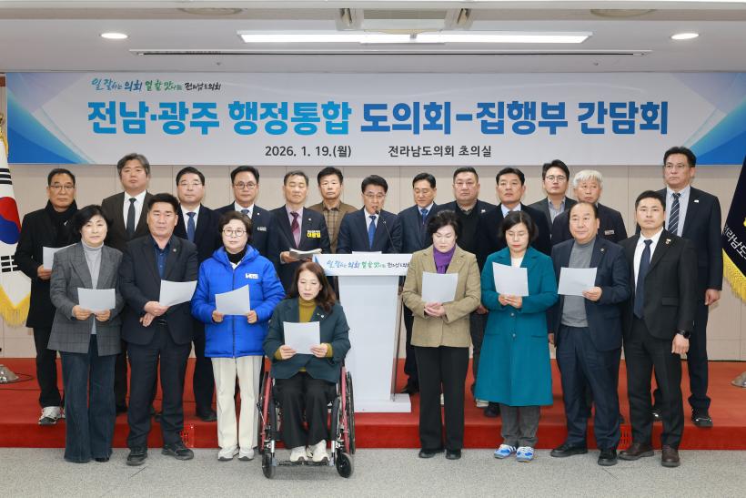 [°ø°£´º½º = ±è¼ö±Ù±âÀÚ] Àü¶ó³²µµÀÇȸ´Â Áö³ 19ÀÏ µµÀÇȸ¿¡¼ ±è¿µ·Ï Àü¶ó³²µµÁö»ç¿Í ±è´ëÁß Àü¶ó³²µµ±³À°°¨ÀÌ Âü¿©ÇÑ °¡¿îµ¥ ¡®Àü³²¡¤±¤ÁÖ ÇàÁ¤ÅëÇÕ µµÀÇȸ–ÁýÇàºÎ °£´ãȸ¡¯¸¦ ¿°í, ÅëÇÕ ÃßÁø ¹æÇâ°ú ÁÖ¿ä ÀïÁ¡¿¡ ´ëÇØ ½Éµµ ÀÖ´Â ³íÀǸ¦ ÁøÇàÇß´Ù.