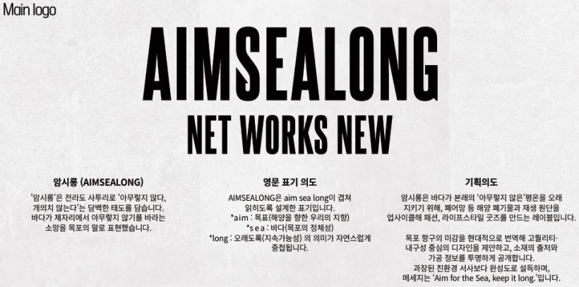 ¡®¾Ï½Ã·Õ(AIMSEALONG)¡¯Àº ¡®¾Æ¹«·¸Áö ¾Ê´Ù, °³ÀÇÄ¡ ¾Ê´Â´Ù¡¯´Â ¶æÀÇ Àü¶óµµ »çÅõ¸®·Î, ¿ì¸®ÀÇ ¹Ù´Ù°¡ º»·¡ÀÇ ¸ð½ÀÀ» ÁöÄѰ¡¸ç ¾Æ¹«·¸Áö ¾Ê±â¸¦ ¹Ù¶ó´Â ¹Ù¶÷À» ´ã¾Æ À̸§ Áö¾îÁ³´Ù. ¿©±â¿¡ ¸ñÇ¥(AIM), ¹Ù´Ù(SEA), Áö¼Ó¼º(LONG)ÀÇ Àǹ̸¦ ´õÇØ ģȯ°æ °¡Ä¡¿Í Áö¼Ó°¡´É¼ºÀ» ÁöÇâÇÏ´Â ¾÷»çÀÌŬ¸µ ºê·£µå·Î ±âȹµÆ´Ù.