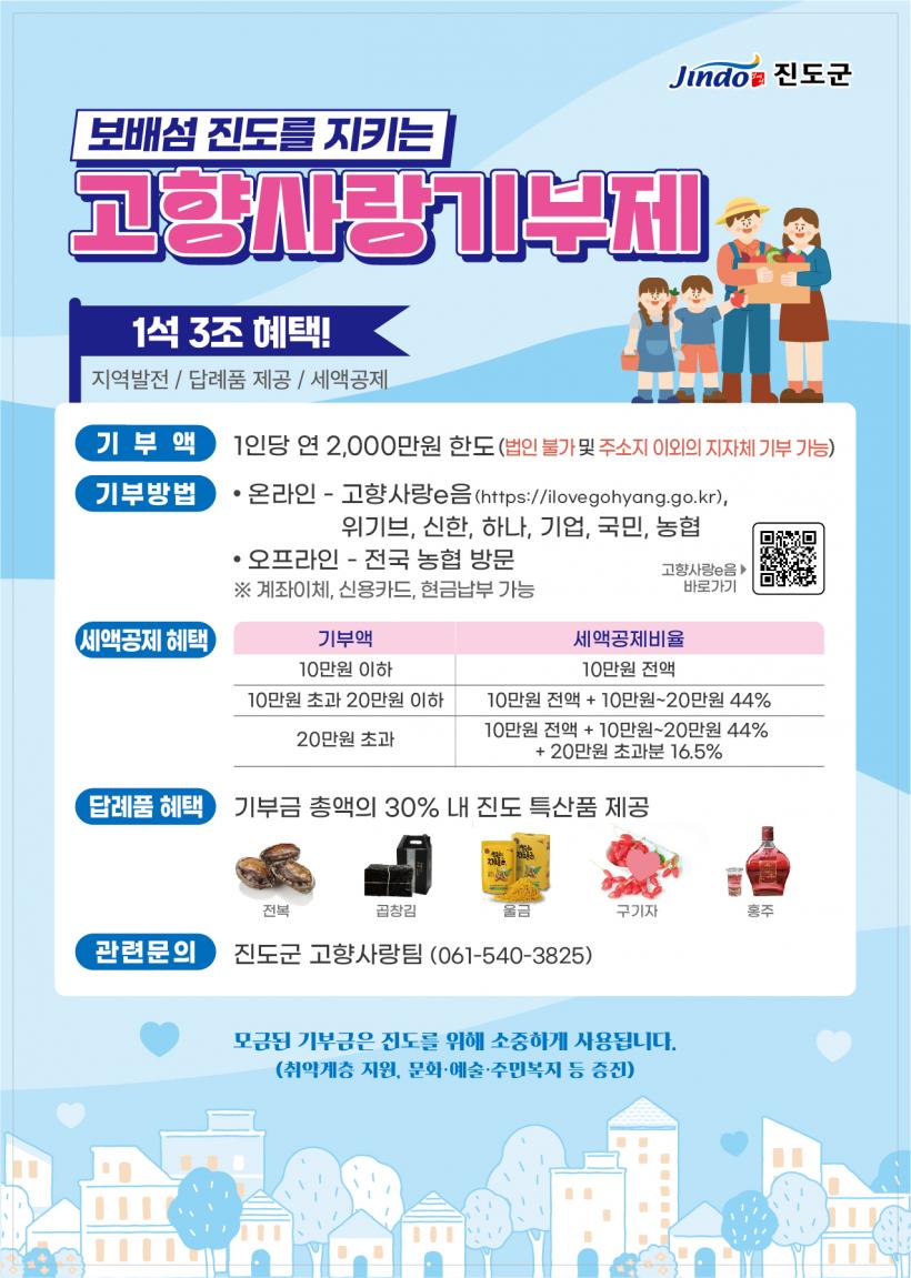 ¶ÇÇÑ, Áö³ÇغÎÅÍ ÁöÁ¤±âºÎ »ç¾÷À¸·Î ¸ð±ÝÇϰí ÀÖ´Â ¡®º¸¹è¼¶ ÁøµµÀÇ ¾ÆÀ̵éÀ» ÁöÄÑÁÖ¼¼¿ä¡¯(Áøµµ±º ÁöÁ¤º´¿ø ¼Ò¾ÆÃ»¼Ò³â°ú ÀÇ·áÁø ÀΰǺñ Áö¿ø)ÀÇ ¸ñÇ¥ ´Þ¼ºÀ» À§ÇØ Àû±ØÀûÀÎ È«º¸¿Í Âü¿© È®´ë¿¡ ³ª¼°í, ¿ÃÇØºÎÅÍ °íÇâ»ç¶û±âºÎÁ¦ ±âºÎÀÚ¿¡ ´ëÇÑ ¿¹¿ì °È¸¦ ÅëÇØ ±âºÎÀÚ¿Í Áøµµ±º °£ÀÇ À¯´ë°¨À» ³ôÀ̰í, Àα¸°¨¼ÒÁö¿ª ´ëÀÀ¿¡µµ Àû±Ø ³ª¼³ ¹æÄ§ÀÌ´Ù.