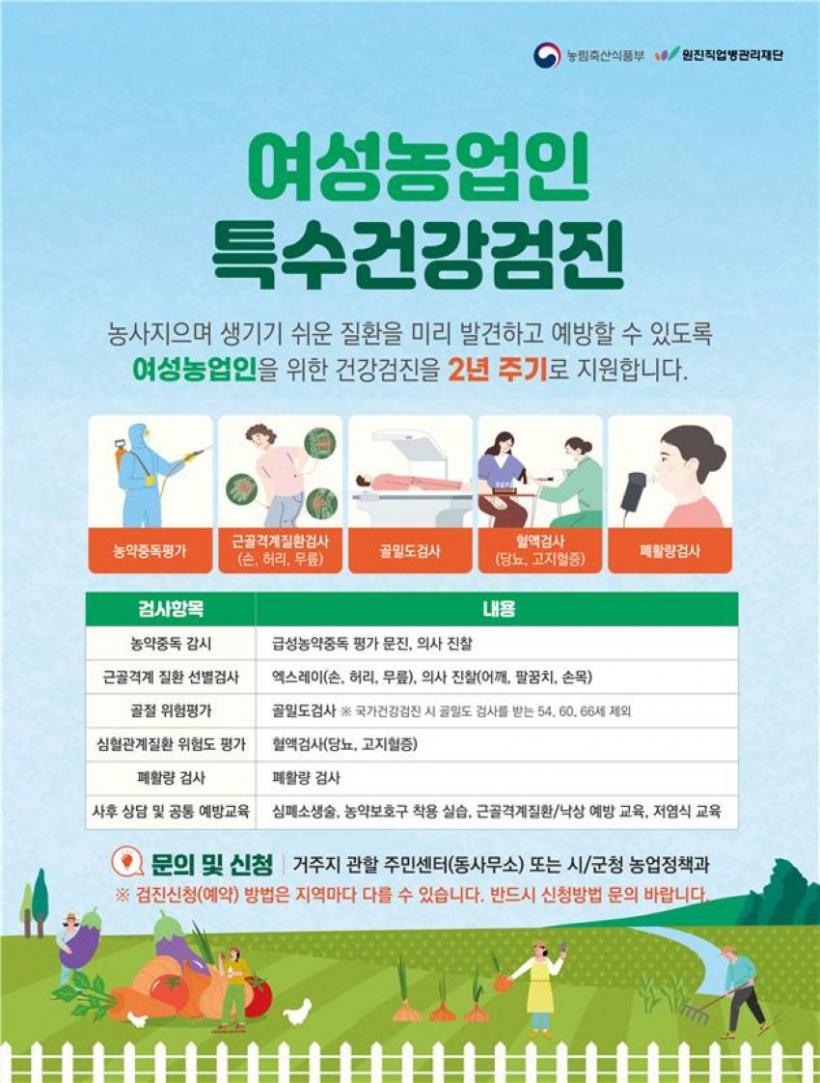 2026³â ¿©¼º³ó¾÷ÀΠƯ¼ö°Ç°°ËÁø Áö¿øÀ» Èñ¸ÁÇÏ´Â ´ë»óÀÚ´Â ÁÖ¼ÒÁö À¾¡¤¸é¡¤µ¿»ç¹«¼Ò »ê¾÷ÆÀÀ» ¹æ¹®ÇØ ½ÅûÇÏ¸é µÈ´Ù. ¾Æ¿ï·¯ ¿ÃÇØºÎÅÍ´Â ³ó¾÷eÁö ¾ÛÀ» ÅëÇØ °ËÁø ½ÅûÀÚ¸¦ È®ÀÎ, °ËÁø ¿¹¾àÀÏ È®Á¤, °ËÁø ½Ã À¯ÀÇ»çÇ× ¾È³» µîÀ» Á¦°øÇÒ ¿¹Á¤ÀÌ´Ù.