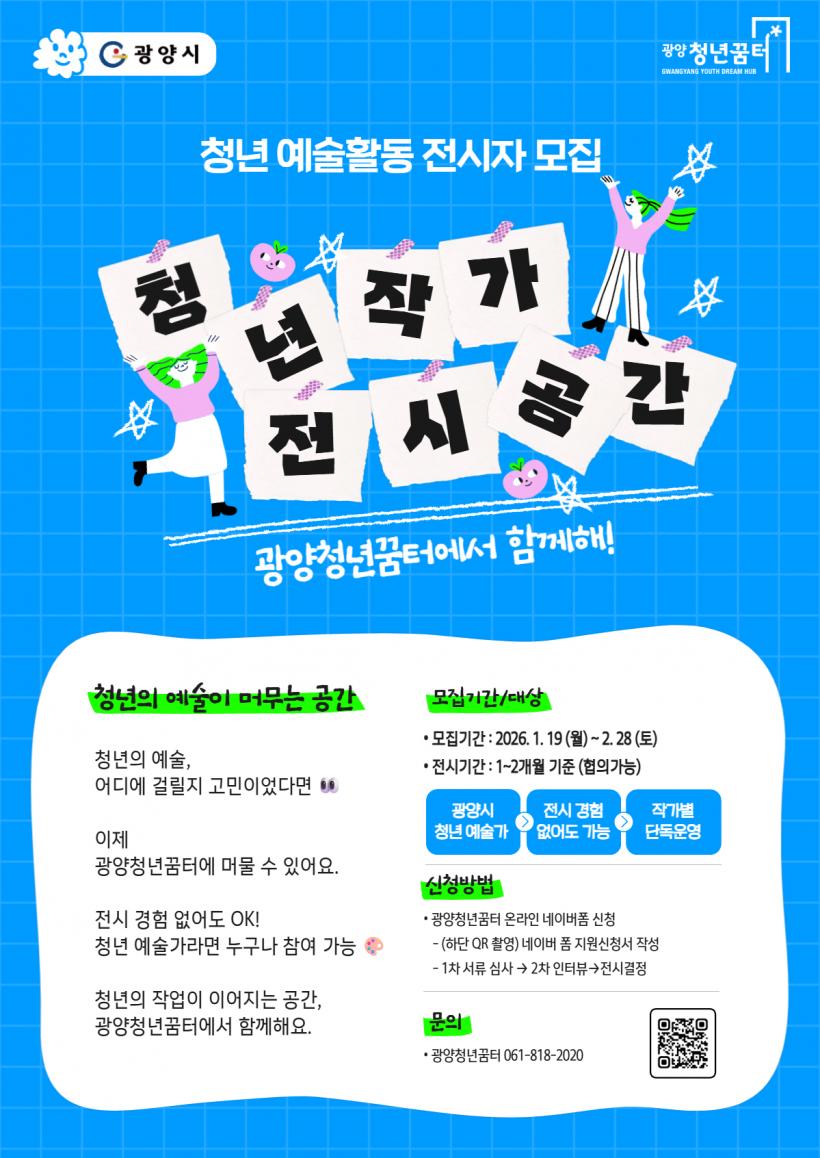 ±¤¾çû³â²ÞÅÍ´Â À̹ø Àü½Ã¸¦ ½ÃÀÛÀ¸·Î »çȸ ÁøÃâÀ» ÁغñÇϴ û³â ¿¹¼ú°¡µé¿¡°Ô µ¥ºß ±âȸ¸¦ Á¦°øÇϰí, ÀÛǰÀ» ¾Ë¸± ¼ö ÀÖ´Â Àü½Ã °ø°£À¸·Î È®´ëÇØ û³â ¿¹¼ú°¡ÀÇ µî¿ë¹® ¿ªÇÒÀ» ¼öÇàÇÒ °èȹÀÌ´Ù. ¾Æ¿ï·¯ ±âÁ¸ ÇÁ·Î±×·¥ ¿î¿µ Áß½ÉÀÇ °ø°£¿¡¼ ³ª¾Æ°¡, ´Ù¾çÇÑ Ã¢ÀÛ È°µ¿°ú ¹®ÈÀû ½Ãµµ°¡ ¼Ò°³µÇ´Â º¹ÇÕ¹®È°ø°£À¸·Î ¹ßÀü½ÃÄÑ ³ª°£´Ù´Â ¹æÄ§ÀÌ´Ù.