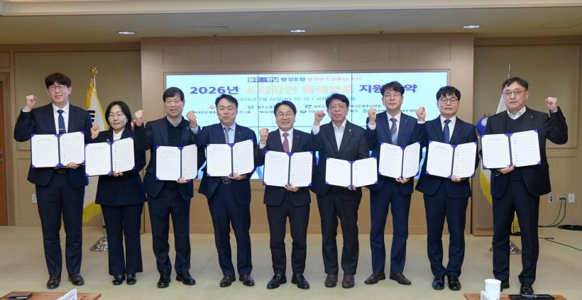 ±¤ÁÖ±¤¿ª½Ã(½ÃÀå °±âÁ¤)´Â 22ÀÏ ½Ãû ºñÁî´Ï½º·ë¿¡¼ ±¤ÁÖÀºÇà, ÇϳªÀºÇà, KB±¹¹ÎÀºÇà, NH³óÇùÀºÇà, ½ÅÇÑÀºÇà, īī¿À¹ðÅ©, ¿ì¸®ÀºÇà µî 7°³ ±ÝÀ¶±â°ü ¹× ±¤Áֽſ뺸ÁõÀç´Ü°ú ¡®2026³â ¼Ò»ó°øÀΠƯ·Êº¸Áõ Áö¿ø Çù¾à¡¯À» ü°áÇß´Ù.