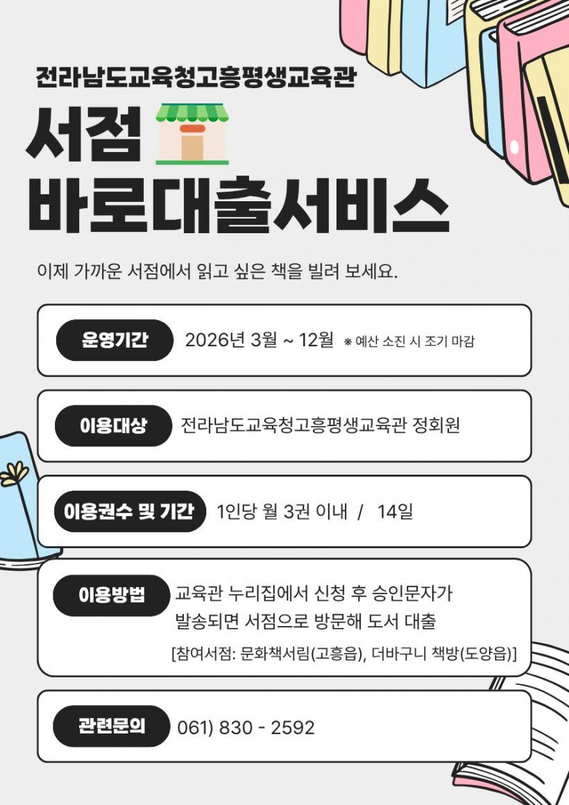 ¡®¼Á¡ ¹Ù·Î´ëÃ⼺ñ½º¡¯´Â ÀÌ¿ëÀÚ°¡ °íÈïÆò»ý±³À°°ü ´©¸®Áý¿¡¼ Èñ¸Áµµ¼¸¦ ½ÅûÇϸé Áö¿ª ¼Á¡¿¡¼ »õ Ã¥À» ¹Ù·Î ºô·Á º¼ ¼ö ÀÖ´Â ¼ºñ½ºÀÌ´Ù.