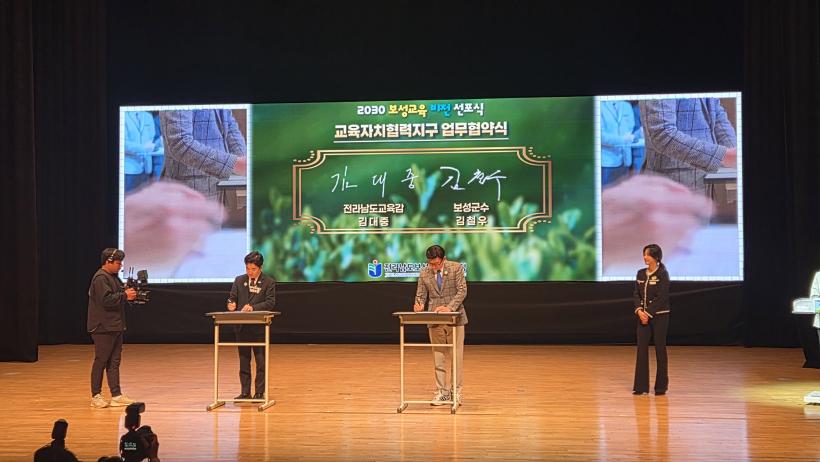 [°ø°£´º½º = ±è¼ö±Ù±âÀÚ] Àü¶ó³²µµ±³À°Ã»°ú º¸¼º±ºÀº Áö³ 1¿ù 23ÀÏ(±Ý) ¿ÀÈÄ 1½Ã º¸¼º±º¹®È¿¹¼úȸ°ü¿¡¼ ¡®2030 º¸¼º ¹Ì·¡±³À° ºñÀü ¼±Æ÷½Ä¡¯À» °³ÃÖÇß´Ù. ÀÌ ÀÚ¸®¿¡¼ ¾ç ±â°üÀº ±³À°ÀÚÄ¡Çù·ÂÁö±¸ ¿î¿µÀ» À§ÇÑ ¾÷¹«Çù¾à(MOU)À» ü°áÇß´Ù°í ¹àÇû´Ù. À̹ø Çù¾àÀº '3º¸ÇâÀÇ ¾ó·Î ¼¼°è¸¦ ǰ´Â ±Û·ÎÄà º¸¼º±³À°' ½ÇÇöÀ» À§ÇÑ ±¸Ã¼ÀûÀΠù°ÉÀ½ÀÌ µÇ¾ú´Ù.