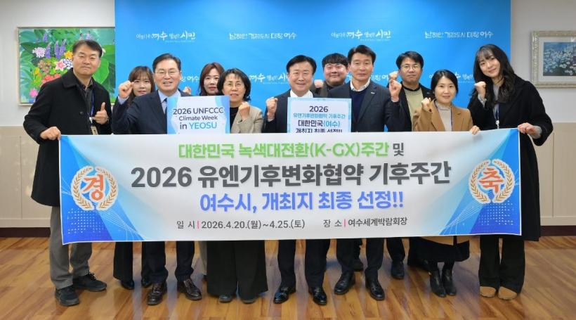 [°ø°£´º½º = ¾ÈÀ翵±âÀÚ] ¿©¼ö½Ã°¡ ¡®2026³â À¯¿£±âÈĺ¯ÈÇù¾à(UNFCCC) ±âÈÄÁÖ°£(Climate Week)¡¯ °³ÃÖÁö·Î ´ëÇѹα¹(¿©¼ö)ÀÌ ÃÖÁ¾ ¼±Á¤µÆ´Ù°í ¹àÇû´Ù.