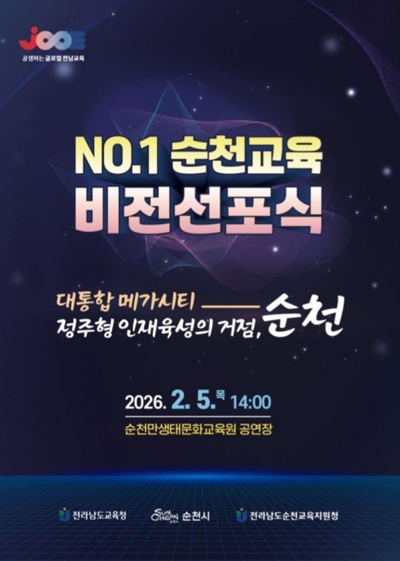 [°ø°£´º½º = ±è¼ö±Ù±âÀÚ] Àü¶ó³²µµ¼øÃµ±³À°Áö¿øÃ»(±³À°Àå Ç㵿±Õ)Àº ¿À´Â 2¿ù 5ÀÏ ¼øÃµ¸¸»ýŹ®È±³À°¿ø °ø¿¬Àå¿¡¼ ¡®NO.1 ¼øÃµ±³À°¡¯ ºñÀü ¼±Æ÷½ÄÀ» °³ÃÖÇÑ´Ù°í ¹àÇû´Ù.