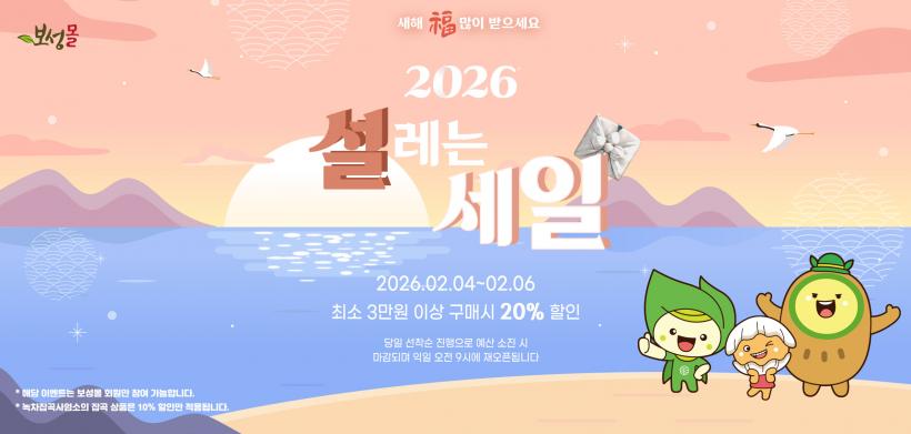 [°ø°£´º½º = ±è¿ëÁø±âÀÚ] º¸¼º±ºÀº ¼³ ¸íÀýÀ» ¸Â¾Æ ¿À´Â 2¿ù 4ÀϺÎÅÍ 3Àϰ£ ³óƯ»ê¹° ¿Â¶óÀÎ ¼îÇθô ¡®º¸¼º¸ô¡¯¿¡¼ ÃÖ´ë 20% ÇÒÀΰú ´Ù¾çÇÑ Àû¸³ À̺¥Æ®¸¦ °áÇÕÇÑ Æ¯º° ÇÒÀÎ Çà»ç¸¦ ÁøÇàÇÑ´Ù°í ¹àÇû´Ù.