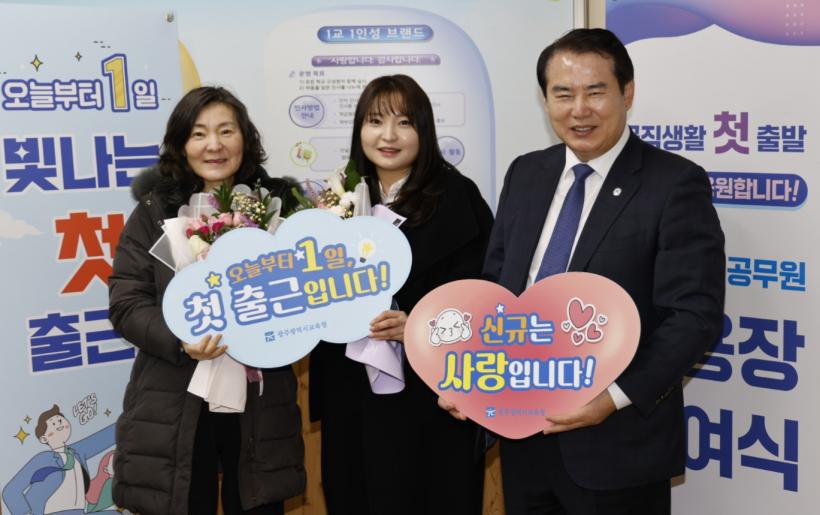 À̳¯ ÀÌÁ¤¼± ±³À°°¨Àº 2¿ù 1ÀÏÀÚ·Î ¼±¤ÃÊ ¹ß·ÉÀ» ¹ÞÀº ±³À°ÇàÁ¤Á÷ 9±Þ ½ÅÇýÁø ÁÖ¹«°üÀÇ º¹¹« ¼±¼¸¦ ¹Þ°í ÀÓ¿ëÀåÀ» ¼ö¿©Çß´Ù. ÀÌ¾î »õ·Î¿î Ãâ¹ßÀ» ÃàÇÏÇÏ´Â ¸¶À½°ú ¼ÒÁßÇÑ ÀÎÀ縦 Ű¿öÁֽŠÁÖ¹«°üÀÇ °¡Á·¿¡°Ô °¨»çÀÇ ¶æÀ» ÀüÇϱâ À§ÇÑ ÃàÇÏ ÆíÁö¸¦ Àü´ÞÇß´Ù.
