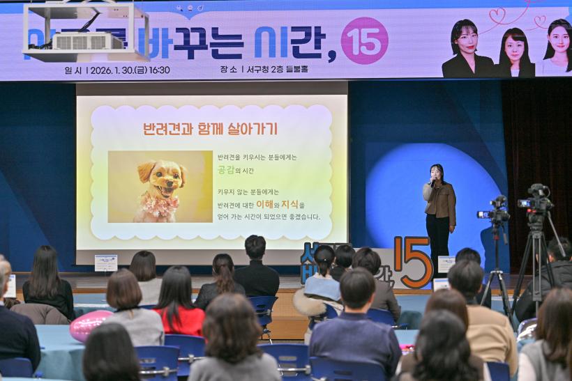 ±¤ÁÖ ¼±¸´Â Áö³ 1¿ù 30ÀÏ ¼±¸Ã» µéºÒȦ¿¡¼ ¡®2026 ¼¹Ù½Ã15(¼±¸¸¦ ¹Ù²Ù´Â ½Ã°£ 15ºÐ) Á¦1°¡¯À» °³ÃÖÇÏ°í ³ªÀÇ È²öÇÑ Ãë¹Ì»ýȰ, ¹Ý·Á°ß°ú ÇÔ²² »ì¾Æ°¡±â µî¿¡ ´ëÇØ 15ºÐ °ÀǸ¦ ÁøÇàÇß´Ù.