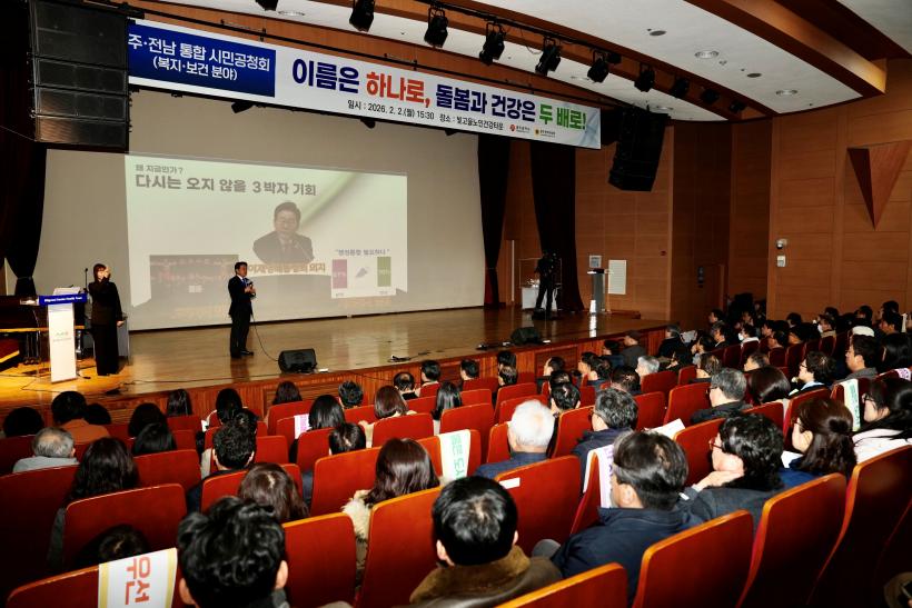 [°ø°£´º½º = ±è¼ö±Ù±âÀÚ] ±¤ÁÖ±¤¿ª½Ã(½ÃÀå °±âÁ¤)´Â 2ÀÏ ºû°íÀ»³ëÀΰǰŸ¿î¿¡¼ ¡®±¤ÁÖÀü³² ÅëÇÕ º¹Áö¡¤º¸°Ç¡¤ÀÇ·á ºÐ¾ß ½Ã¹Î°øÃ»È¸¡¯¸¦ °³ÃÖ, ±¤ÁÖÀü³² ÅëÇÕÀ¸·Î ±¤ÁÖ°¡ ½ÃÀÛÇÑ ÅëÇÕµ¹º½ µîÀ» ´õ µÎÅÓ°Ô º¸ÀåÇÒ ¼ö ÀÖ´Â ¹æ¾È µîÀ» ³íÀÇÇß´Ù.