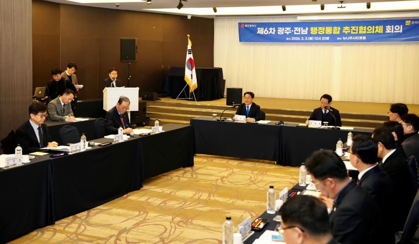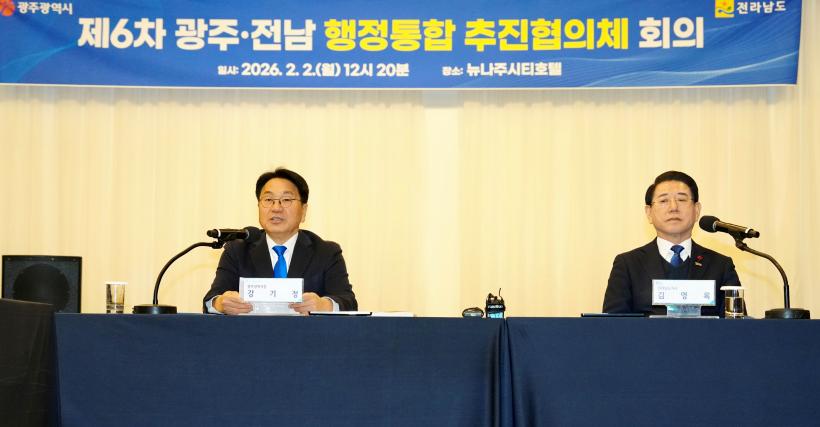[°ø°£´º½º = ±è¼ö±Ù±âÀÚ] ±¤ÁÖ±¤¿ª½Ã(½ÃÀå °±âÁ¤)¿Í Àü¶ó³²µµ(Áö»ç ±è¿µ·Ï)´Â 2ÀÏ Àü³² ³ªÁֽà ´º³ªÁÖ¾¾Æ¼È£ÅÚ¿¡¼ ¡®±¤ÁÖÀü³² ÇàÁ¤ÅëÇÕ ÃßÁøÀ» À§ÇÑ Á¦6Â÷ ÃßÁøÇùÀÇü ȸÀÇ¡¯¸¦ °³ÃÖÇß´Ù.