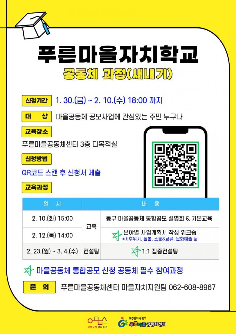 ¡®Çª¸¥¸¶À»ÀÚÄ¡Çб³ °øµ¿Ã¼ °úÁ¤(»õ³»±â)¡¯ Âü¿©¸¦ Èñ¸ÁÇÏ´Â ÁÖ¹ÎÀº µ¿±¸ Ǫ¸¥¸¶À»°øµ¿Ã¼¼¾ÅÍ ¸¶À»ÀÚÄ¡Áö¿øÆÀ(¢Ï062-608-8967)À¸·Î ¹®ÀÇÇÏ¸é µÈ´Ù.