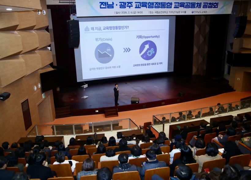 ±è´ëÁß ±³À°°¨Àº ¡°Àü³²¡¤±¤ÁÖ ±³À°ÇàÁ¤ÅëÇÕÀº ´Ü¼øÇÑ ÇàÁ¤ÀÇ °áÇÕÀÌ ¾Æ´Ï¶ó ÇлýÀÇ ¼ºÀå°ú Áö¿ª ±³À°ÀÇ ¹Ì·¡¸¦ ÇÔ²² ¼³°èÇÏ´Â °úÁ¤¡±À̶ó¸ç ¡°±³À°°øµ¿Ã¼ÀÇ ¸ñ¼Ò¸®¸¦ ÃæºÐÈ÷ µè°í ½ÅÁßÇÏ°Ô ³íÀǸ¦ À̾ Áö¿ª ±³À°ÀÇ »õ·Î¿î µµ¾àÀ» ÀÌ·ç°Ú´Ù¡±°í ¸»Çß´Ù.