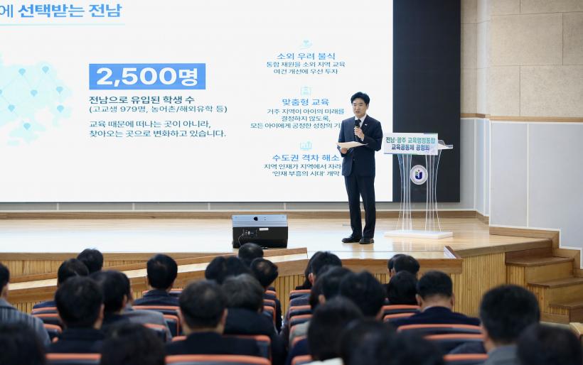 °øÃ»È¸¿¡´Â ±³Á÷¿ø°ú Çкθð µî Àü³²±³À° °øµ¿Ã¼ ±¸¼º¿øÀÌ Âü¼®ÇßÀ¸¸ç, ±è´ëÁß ±³À°°¨ÀÌ Á÷Á¢ ÇöÀåÀ» ã¾Æ Àü³²¡¤±¤ÁÖ ±³À°ÇàÁ¤ÅëÇÕÀÇ ¹Ì·¡ ºñÀüÀ» ¼³¸íÇß´Ù.