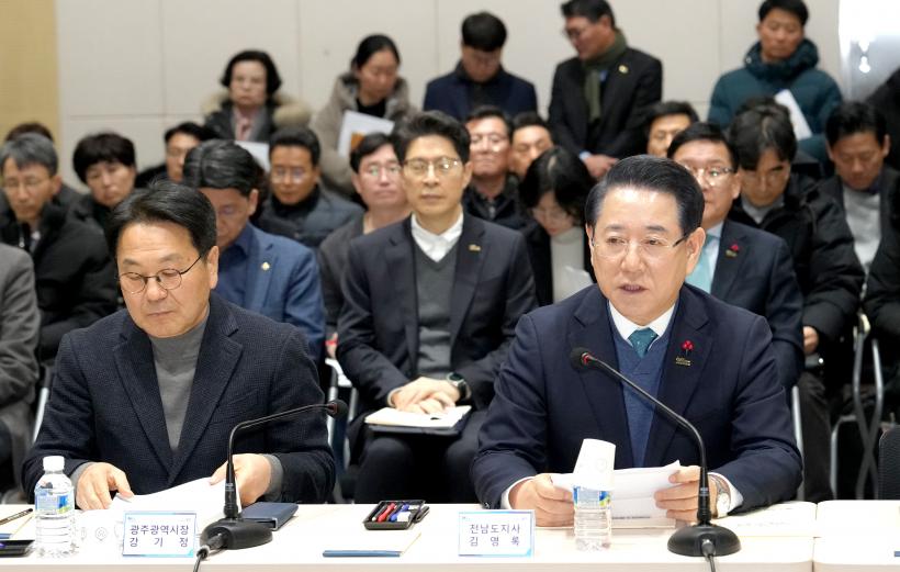 À̳¯ °£´ãȸ¿¡´Â ±è¿µ·Ï Àü³²µµÁö»ç¿Í °±âÁ¤ ±¤ÁÖ±¤¿ª½ÃÀå, Áö¿ª ±¹È¸ÀÇ¿øµéÀÌ Âü¼®ÇØ Àü³²±¤ÁÖÅëÇÕÆ¯º°½Ã ¼³Ä¡¸¦ À§ÇÑ Æ¯º°¹ý¿¡ ´ëÇÑ Áß¾ÓºÎó °ËÅä ÀǰßÀ» °øÀ¯Çϰí, ±¹È¸ ÇàÁ¤¾ÈÀüÀ§¿øÈ¸ ½É»ç °úÁ¤¿¡¼ÀÇ °øµ¿ ´ëÀÀ Àü·«À» ³íÀÇÇß´Ù.