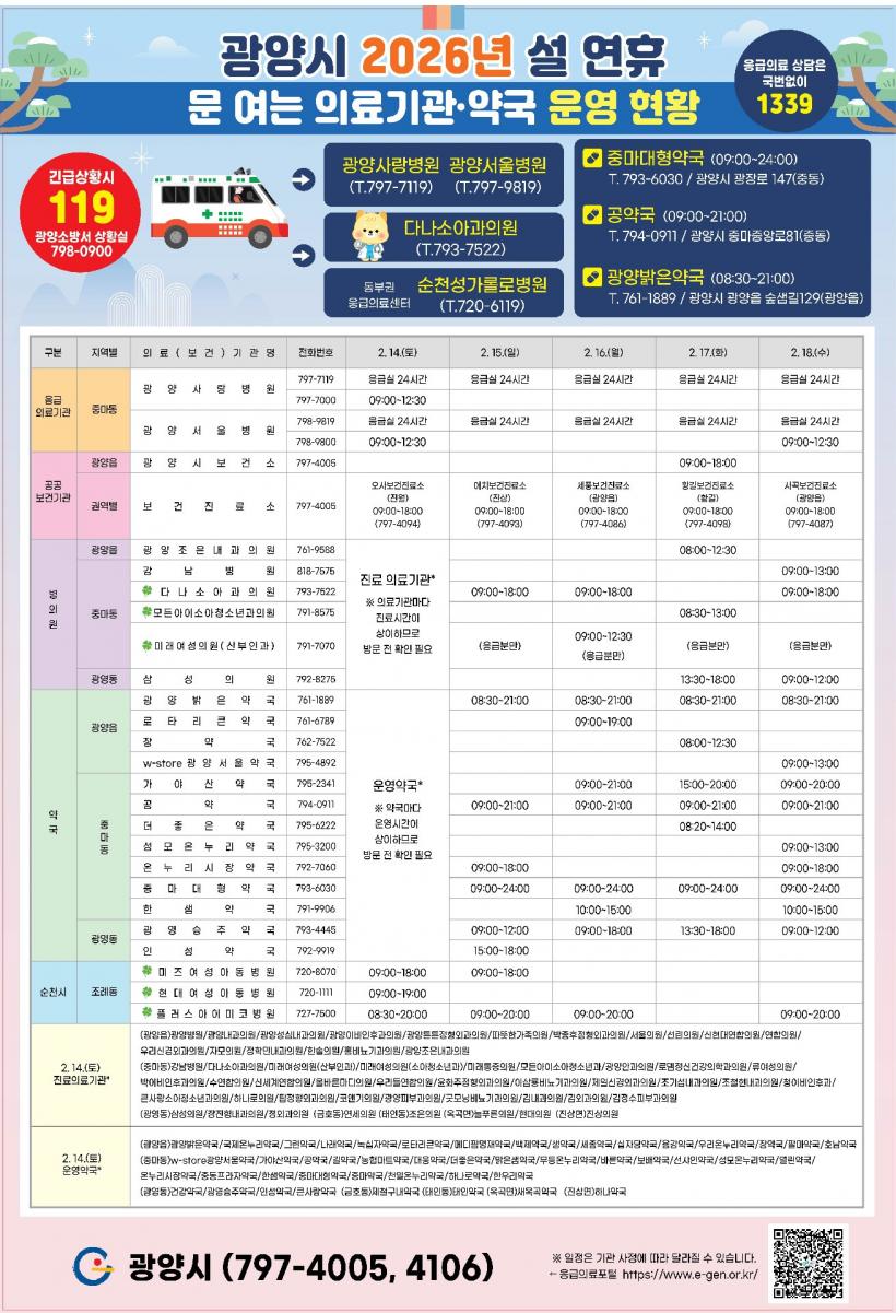 ±¤¾ç½Ã °ü°èÀÚ´Â ¡°¼³ ¿¬ÈÞ ±â°£ ºñ»óÁø·á ¹× ÈÞÀÏÁöÅ´ÀÌ ¾à±¹ ¿î¿µ¿¡ ÇùÁ¶ÇØ ÁֽŠÁö¿ª ÀÇ»çȸ¿Í ¾à»çȸ¿¡ °¨»çµå¸°´Ù¡±¸ç ¡°½Ã¹Î°ú ±Í¼º°´µéÀÌ Æí¾ÈÇÑ ¼³ ¿¬ÈÞ¸¦ º¸³¾ ¼ö ÀÖµµ·Ï ºñ»óÁø·áü°è ¿î¿µ¿¡ ÃÖ¼±À» ´ÙÇϰڴ١±°í ¸»Çß´Ù. ¾Æ¿ï·¯ ¡°¿¬ÈÞ ±â°£ ¹® ¿©´Â º´¡¤ÀÇ¿ø°ú ¾à±¹À» ÀÌ¿ëÇÒ °æ¿ì, ¿î¿µ ½Ã°£À» ¹Ì¸® È®ÀÎÇÑ ÈÄ ¹æ¹®ÇØ ÁÖ½Ã±æ ¹Ù¶õ´Ù¡±°í ´çºÎÇß´Ù.