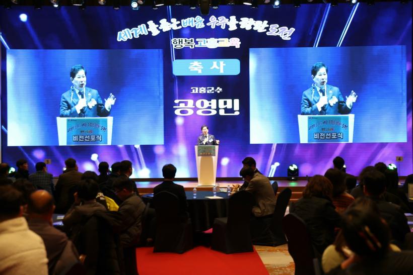 À̾î Àü¶ó³²µµ ±³À°°¨, °íÈﱺ¼ö, °íÈﱺÀÇȸ ÀÇÀå, °íÈï±³À°Áö¿øÃ» ±³À°ÀåÀÌ ÇÔ²²ÇÏ´Â ¡®°íÈï±³À° ºñÀü ½Çõ ´ÙÁü °áÀÇ(°øµ¿ ´ÙÁü ÆÛÆ÷¸Õ½º)¡¯°¡ ÁøÇàµÆ´Ù. Âü¼®ÀÚµéÀº ºñÀü ½Çõ¿¡ ´ëÇÑ °øµ¿ ÀÇÁö¸¦ °ø½ÄÀûÀ¸·Î ¼±¾ðÇϰí, Áö¿ª°ú µ¿ÇàÇÏ¸ç °íÈï±³À°ÀÇ »õ·Î¿î Ãâ¹ßÀ» ÇÔ²² ¿¾î°¡°Ú´Ù´Â ¶æÀ» ¸ð¾Ò´Ù.