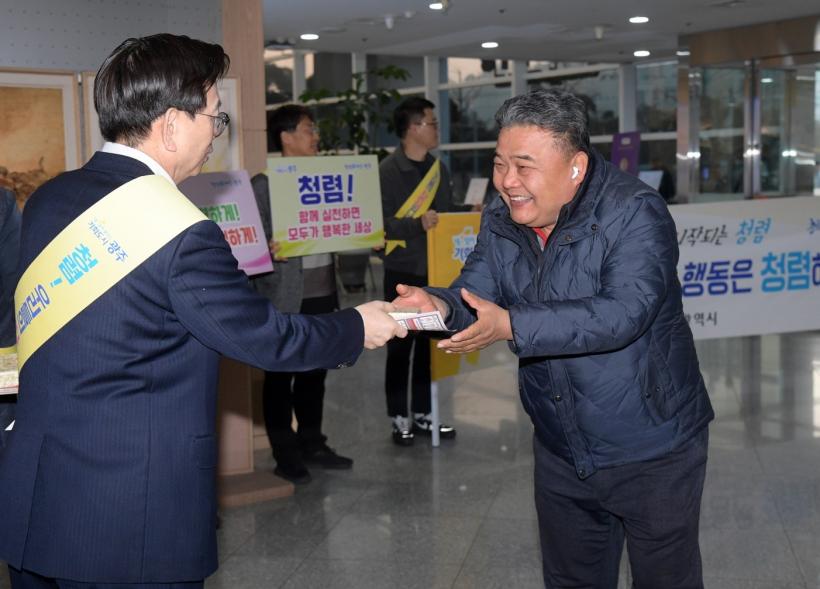 [°ø°£´º½º = ±è¼ö±Ù±âÀÚ] ±¤ÁÖ±¤¿ª½Ã(½ÃÀå °±âÁ¤)´Â 12ÀÏ ½Ãû 1Ãþ¿¡¼ Ãâ±ÙÇÏ´Â Á÷¿øµéÀ» ´ë»óÀ¸·Î ¡®¼³ ¸íÀý û·Å Ä·ÆäÀΡ¯À» ½Ç½Ã, °øÁ÷»çȸ Àü¹Ý¿¡ û·ÅÀÇ °¡Ä¡¸¦ ´Ù½Ã Çѹø µÇ»õ±â´Â ½Ã°£À» °¡Á³´Ù.