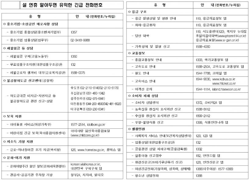¿¬ÈÞ ±â°£ À̿밡´ÉÇÑ º´¿ø°ú ¾à±¹ Á¤º¸´Â Àü³²µµÃ» ´©¸®Áý °øÁö»çÇ×°ú ÀÀ±ÞÀÇ·áÆ÷ÅÐ(¶Ç´Â ÀÀ±ÞÀÇ·áÁ¤º¸Á¦°ø ¾Û)¿¡¼ È®ÀÎÇÒ ¼ö ÀÖ´Ù.