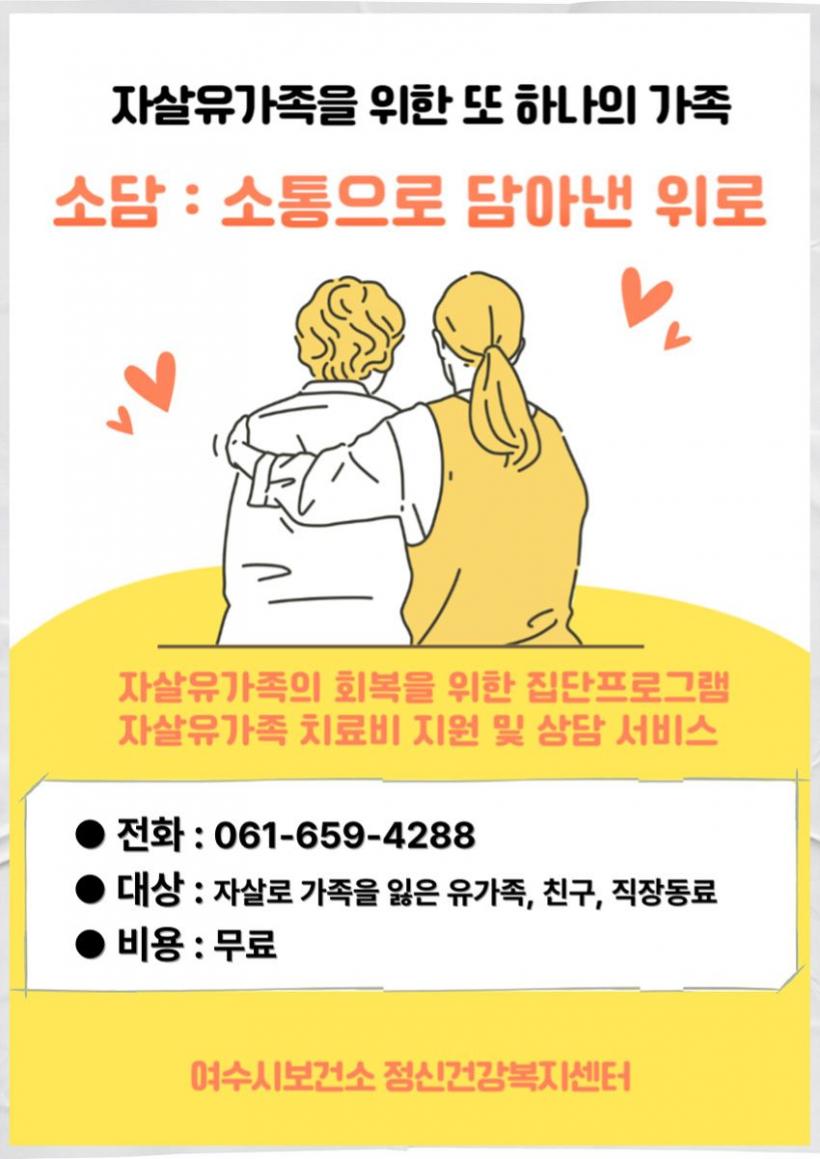 [°ø°£´º½º = ¾ÈÀ翵±âÀÚ] ¿©¼ö½Ã º¸°Ç¼Ò Á¤½Å°Ç°º¹Áö¼¾ÅͰ¡ 2026³â ÇÑ ÇØ µ¿¾È ÀÚ»ì·Î °¡Á·À» ÀÒÀº À¯°¡Á·À» À§ÇÑ ÀÚÁ¶¸ðÀÓ ¡°¼Ò´ã : ¼ÒÅëÀ¸·Î ´ã¾Æ³½ À§·Î¡±¸¦ ¿î¿µÇÏ¸ç »ó½ÇÀÇ ¾ÆÇÄÀ» ÇÔ²² ³ª´©´Â µû¶æÇÑ µ¿Çà¿¡ ³ª¼±´Ù.