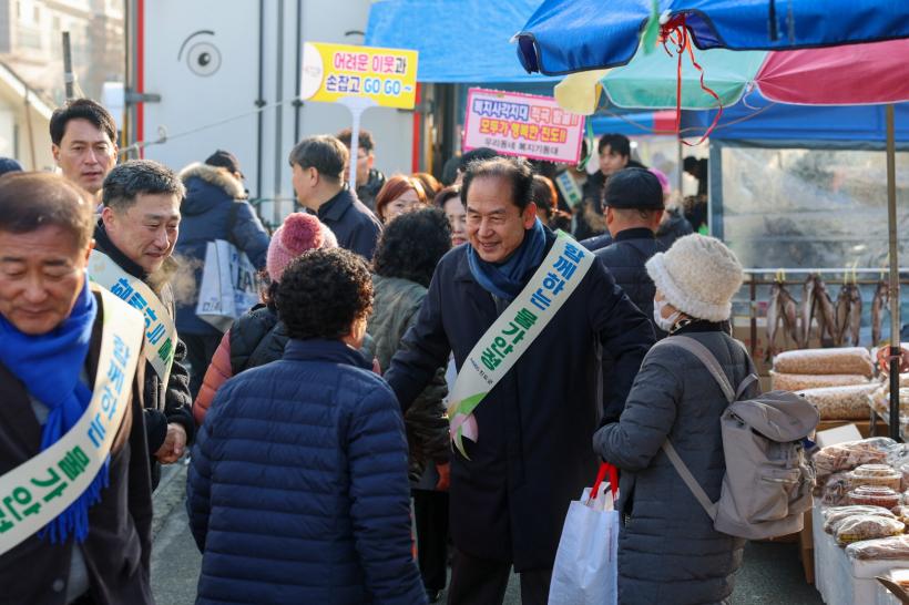 À̳¯ Çà»ç¿¡¼´Â ±èÈñ¼ö Áøµµ±º¼ö¿Í Áøµµ±º °ü°èÀÚµéÀÌ ÀüÅë½ÃÀåÀ» ¹æ¹®ÇØ »óÀεéÀÇ °íÃæÀ» µéÀ¸¸ç ¼ÒÅëÇϰí, Á÷Á¢ ¹°Ç°À» ±¸¸ÅÇÏ´Â µî ÀüÅë½ÃÀåÀÇ ¼Òºñ¸¦ ÃËÁøÇϱâ À§ÇØ ³ª¼¹´Ù.